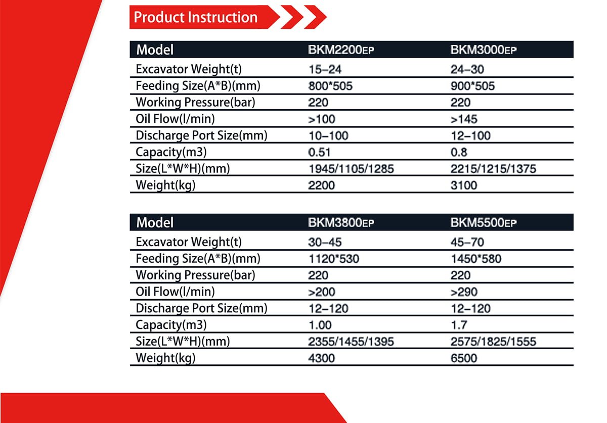 - Efisiensi Kerja Tinggi: Semua crusher ember seri BKM dilengkapi dengan fungsi pembalikan hidraulik, yang meningkatkan efisiensi kerja dan memudahkan penanganan material.