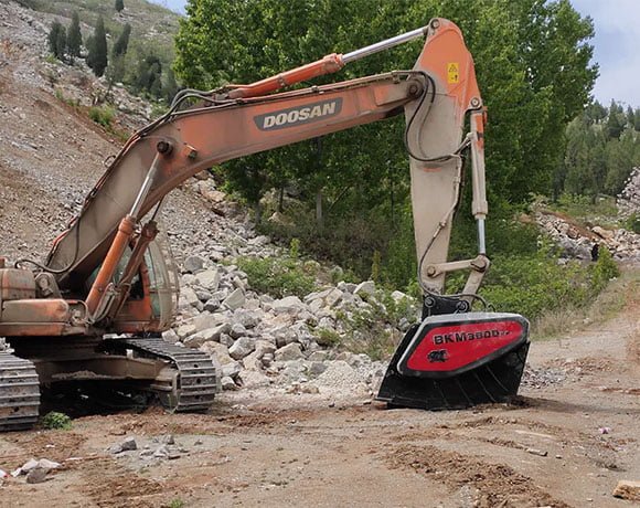 - Efisiensi Kerja Tinggi: Semua crusher ember seri BKM dilengkapi dengan fungsi pembalikan hidraulik, yang meningkatkan efisiensi kerja dan memudahkan penanganan material.