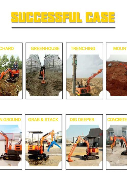 Mini excavator ini ideal untuk proyek-proyek kecil, kebun, lahan pertanian, serta pekerjaan di lingkungan municipal. Mesin ini juga cocok digunakan di taman bermain dan taman umum. Dengan mesin kecil, desain yang sederhana, dan perawatan yang mudah, mini excavator ini andal dan sangat ramah pengguna. Memiliki berbagai fungsi seperti menggali, mencengkram, mengebor, meratakan tanah, membersihkan saluran, dan memecahkan batu, sehingga sangat fleksibel untuk berbagai kebutuhan.